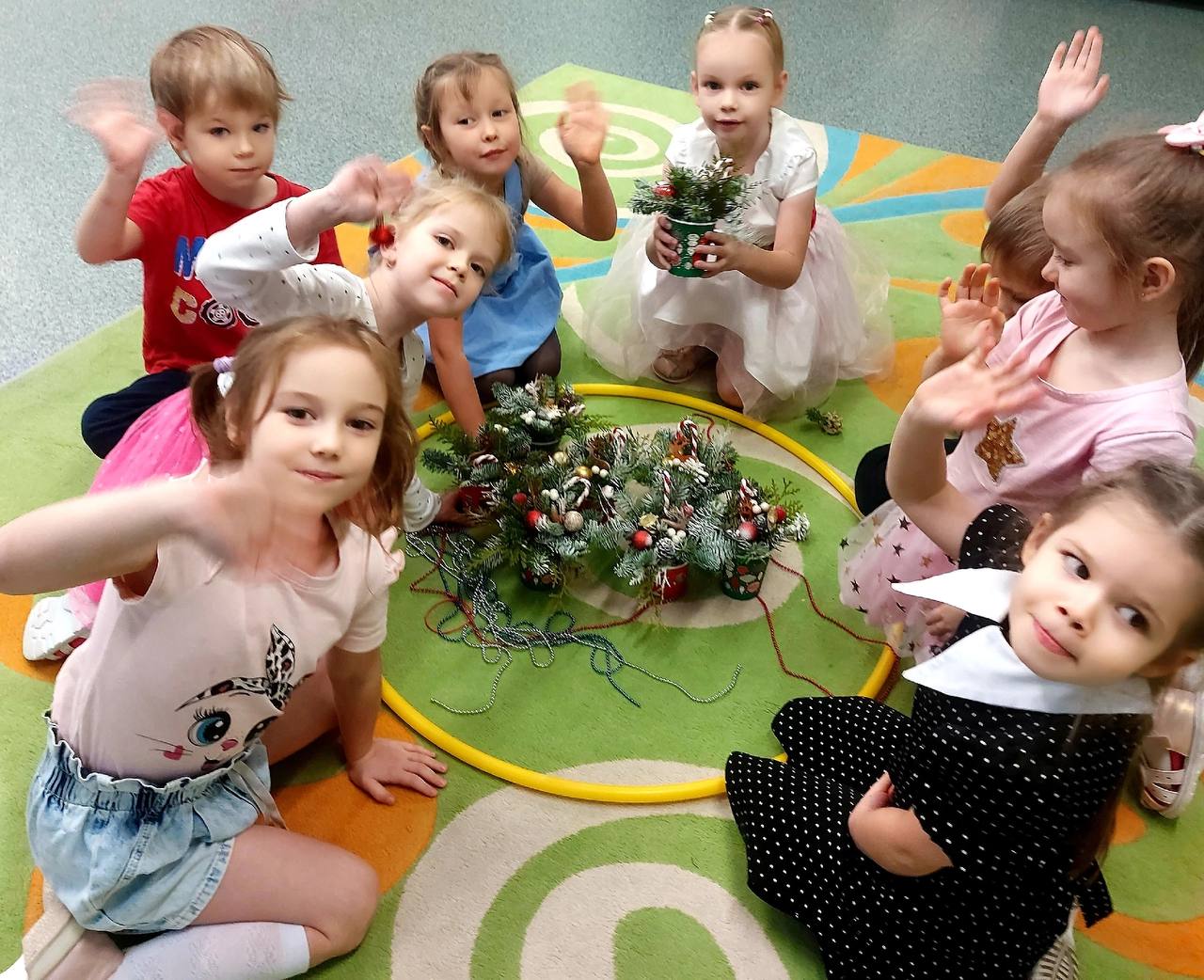 Дети старших групп занимались созданием собственных новогодних композиций, сравнивали и изучали разные виды ели, узнавали много интересного о работе флориста и ощущали приближение праздника.