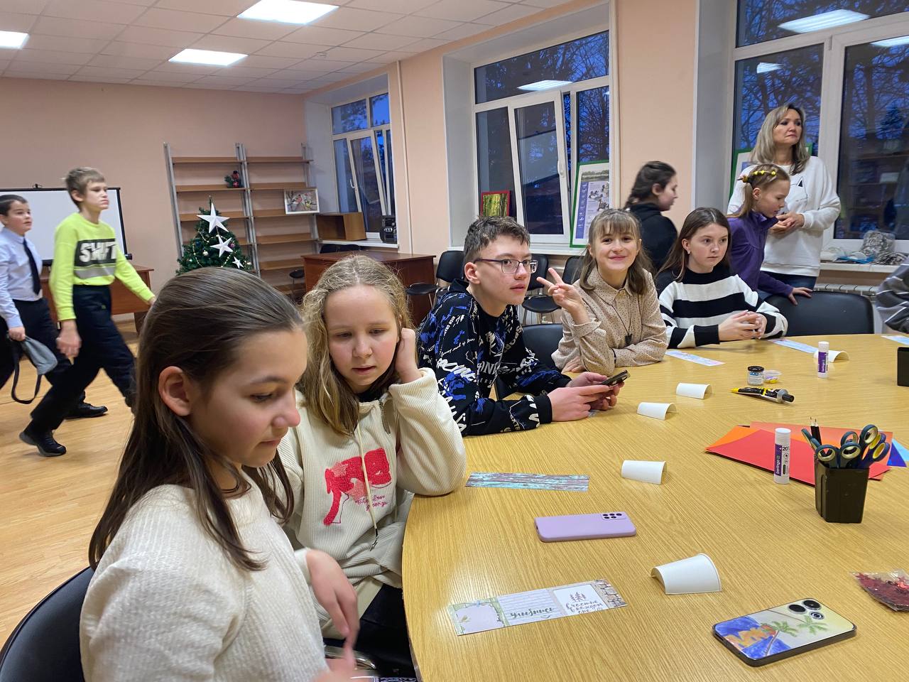 В завершение мероприятия они все вместе создали замечательные новогодние открытки на мастер-классе по технике декупажа.