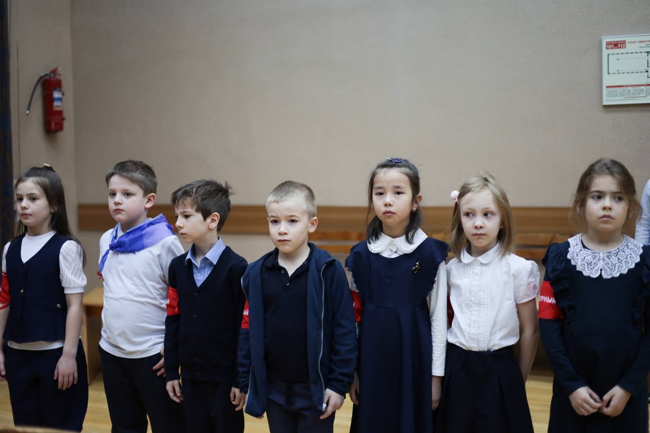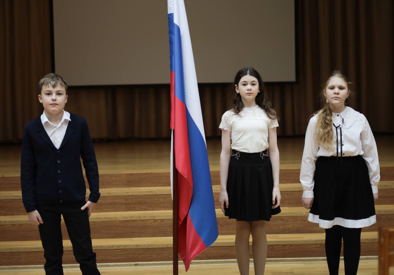 Участники знаменной группы, ученики 4 «А» класса: Дмитрий, Милана, Анастасия.