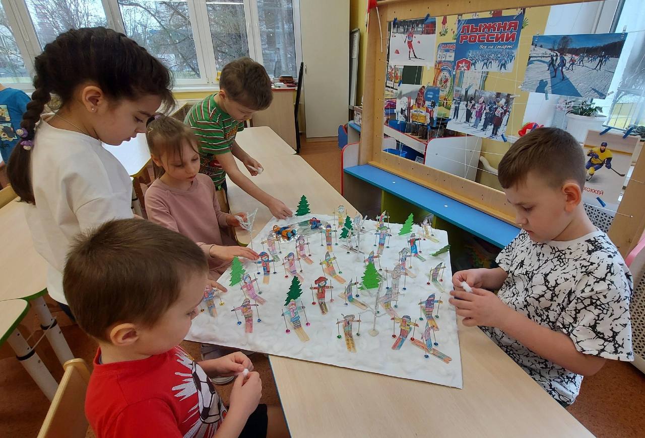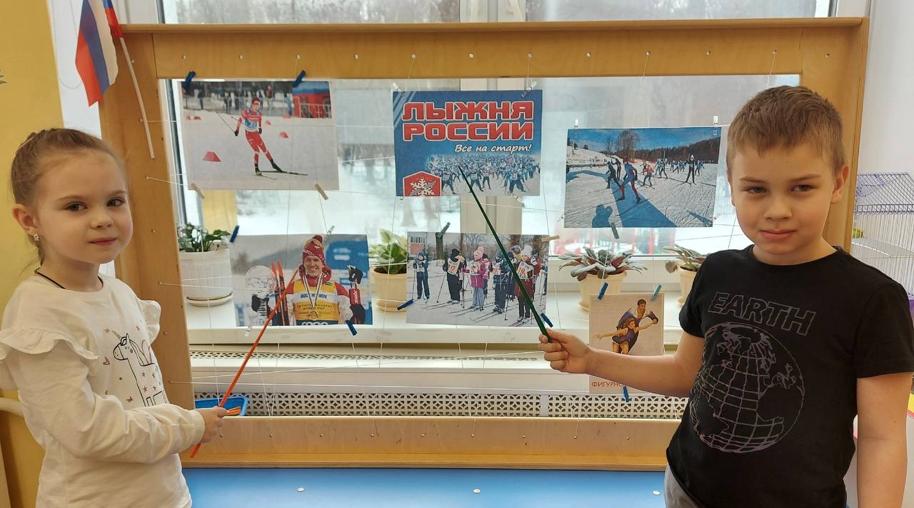 На занятиях ребята провели беседу о зимних видах спорта и узнали, что лыжные гонки — один из самых популярных зимних видов спорта в России.