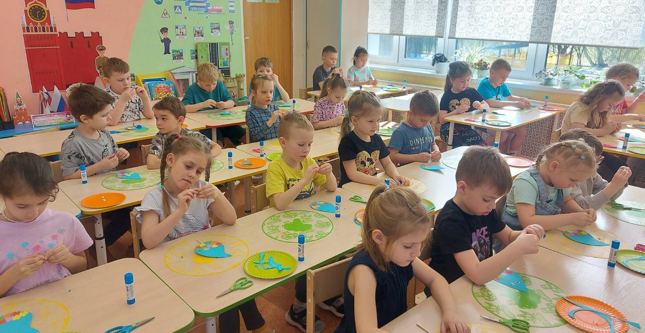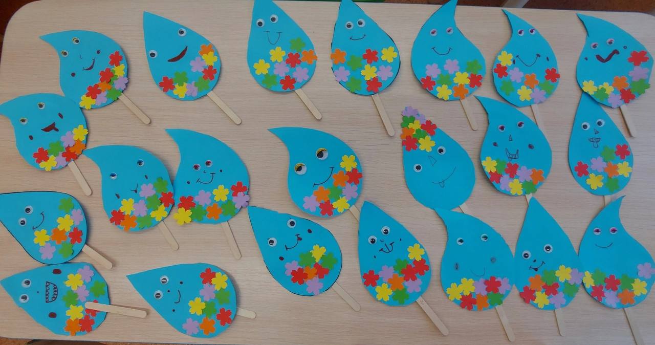 На уроке аппликации ребята создали прекрасные изображения капелек воды — друзей волшебной капельки Каппи.